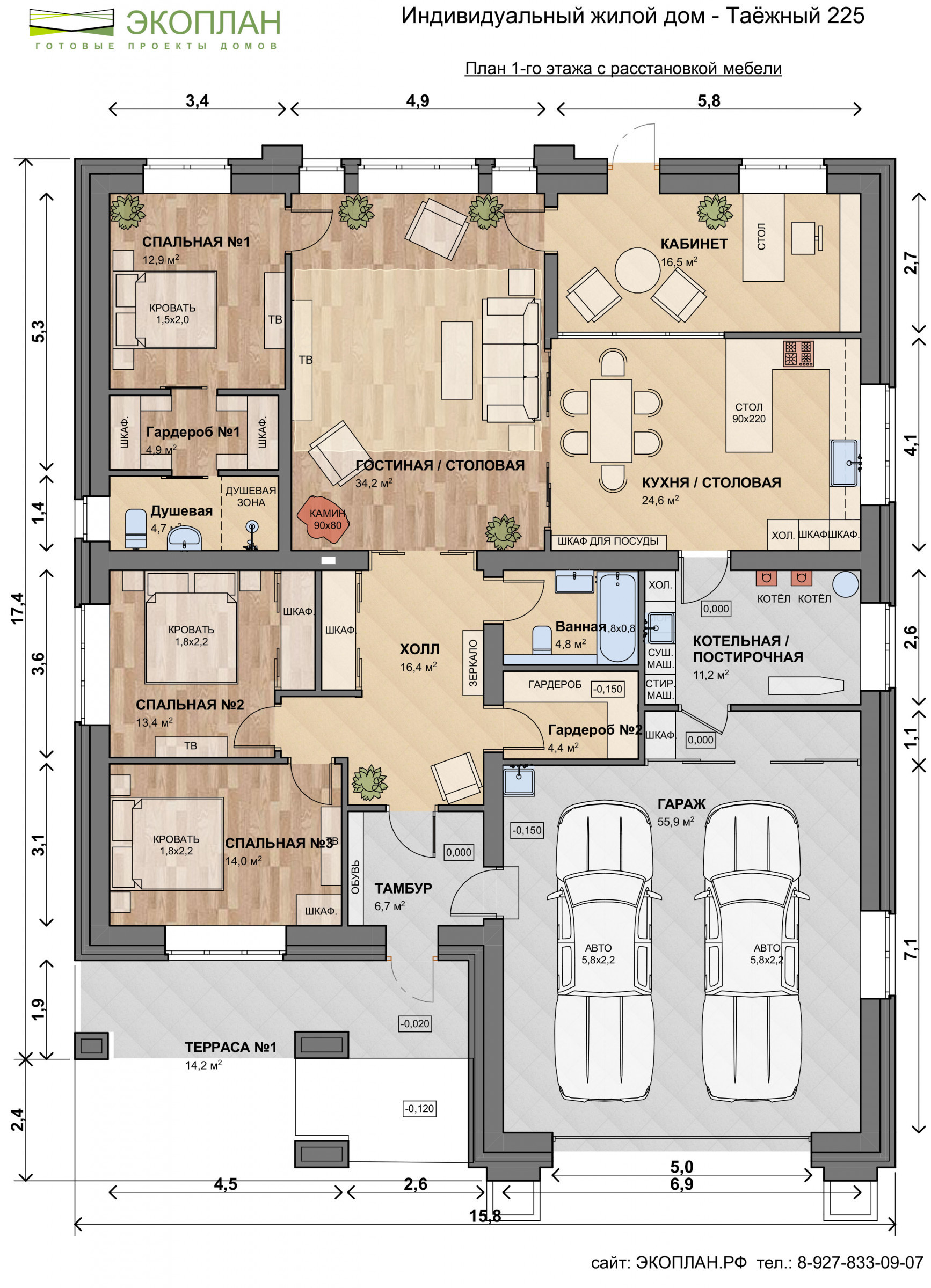 Площадь: 224.55 м2